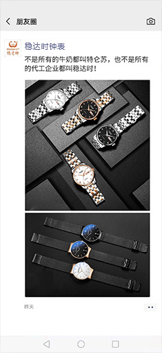 不同材質(zhì),不同工藝,不同質(zhì)量的原材,價格最后都不一樣;穩(wěn)達時每只表精細選材,原裝進口機芯品質(zhì)保證,先打樣后做貨、保障產(chǎn)品品質(zhì);我們始終堅信一分錢一分貨,從源頭把控產(chǎn)高品質(zhì),確保打磨出來的每一只表都是精品。